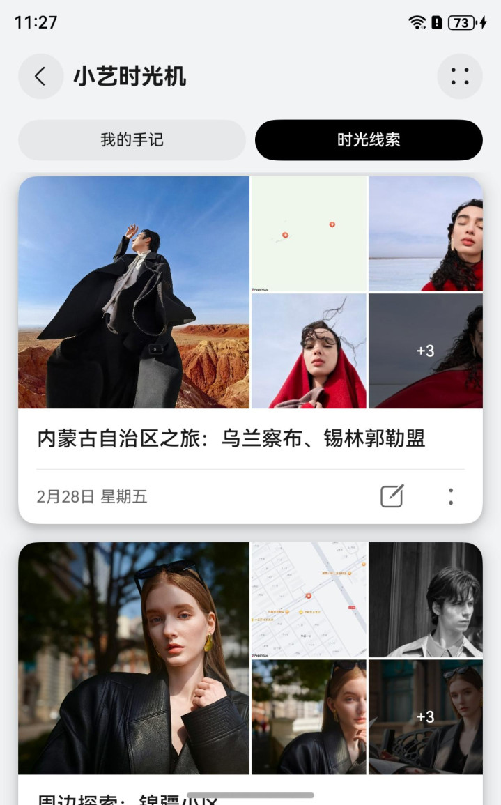 直到前几天探索华为Pura X手机时,我点进小艺App-发现-智能体市场里的小艺时光机Agent——TA呈现的画面,让我结结实实愣住了:我那趟被自己定义为“平平无奇”的内蒙古之旅,被小艺时光机Agent自动生成了带封面、地图和时间线的精美手记。